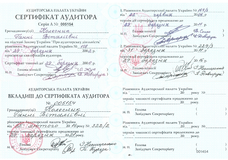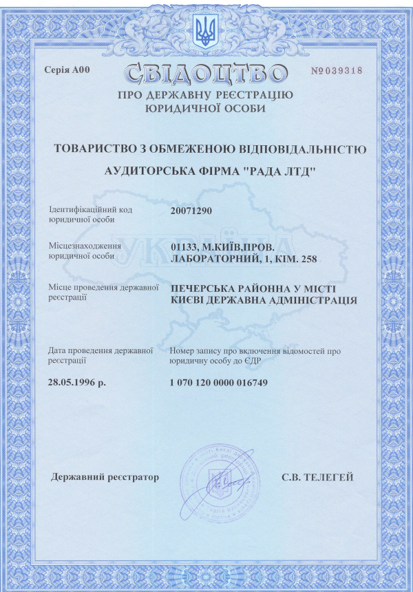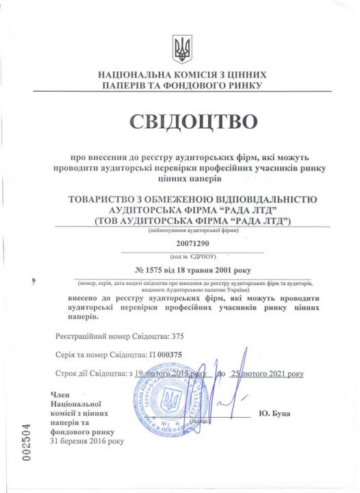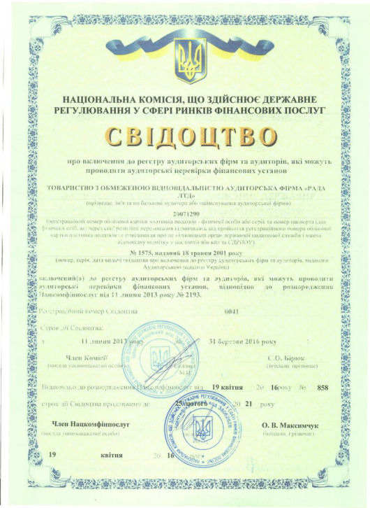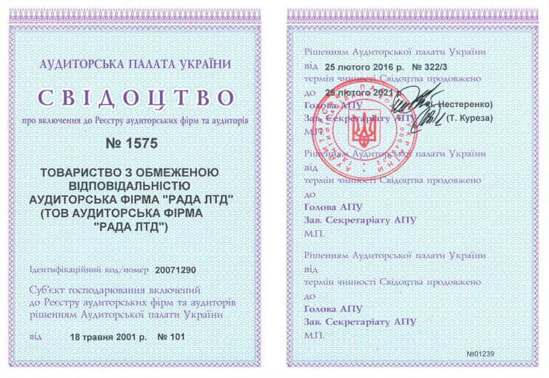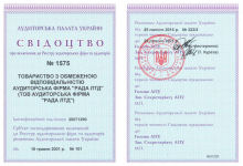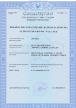 Сертифікати та свідоцтва Аудиторська фiрма «Рада Лтд»