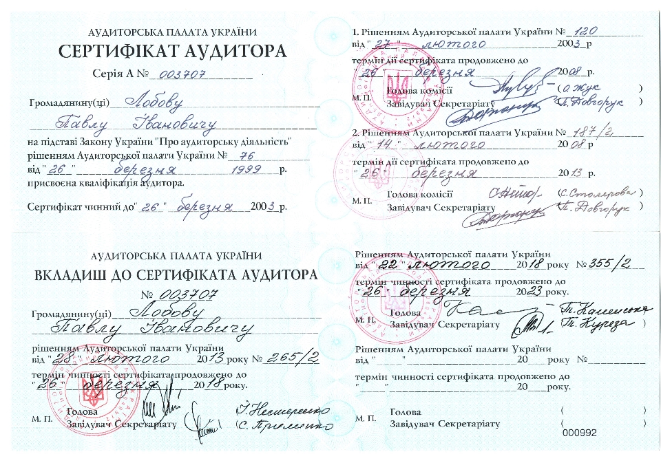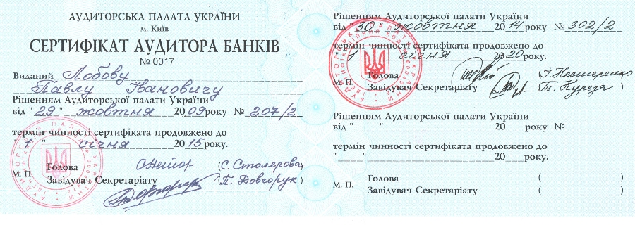 Сертифікат Аудитора БанкiвЛобов П.І.